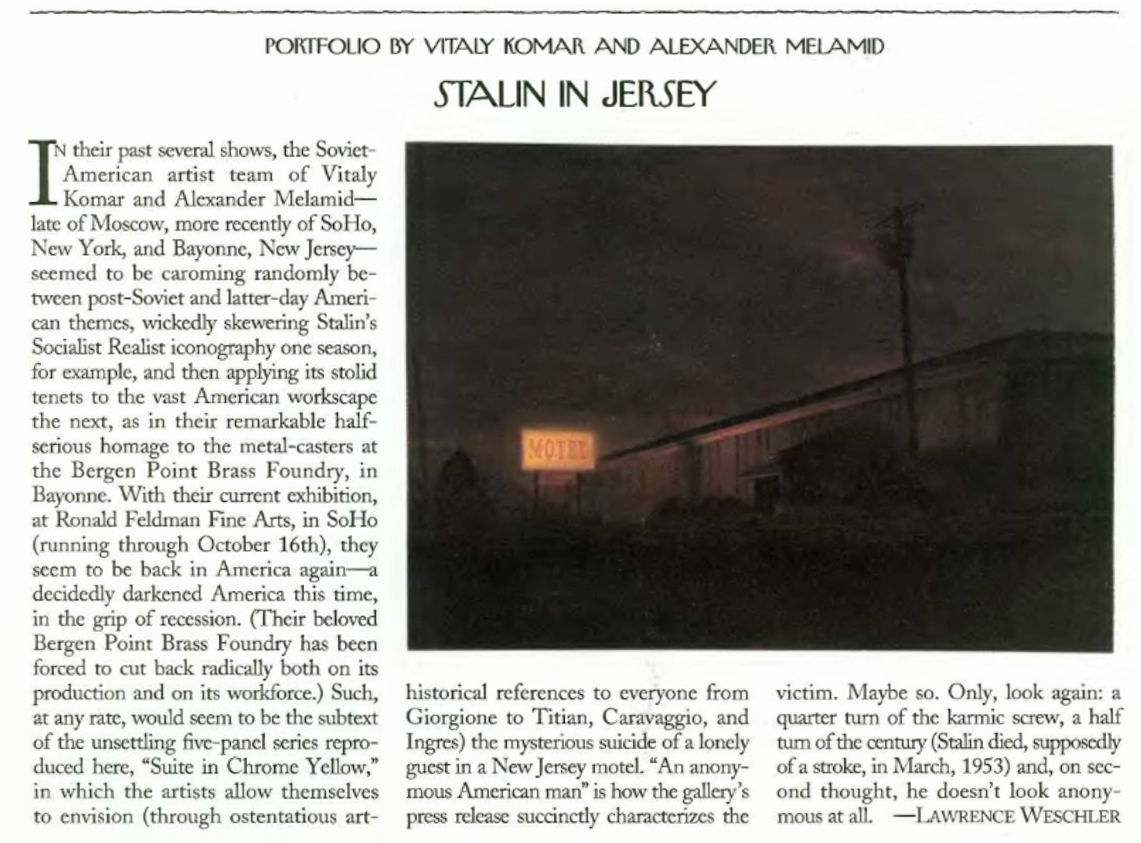 For some reason that Suburban Stalin was for me the most affecting of all those bored incarnations, and for a while I couldn’t figure out why, but then I realized that its way had been prepared, for me anyway, by a marvelous suite of paintings I covered for the New Yorker over thirty years ago (in the issue of September 13, 1993), to wit, this one