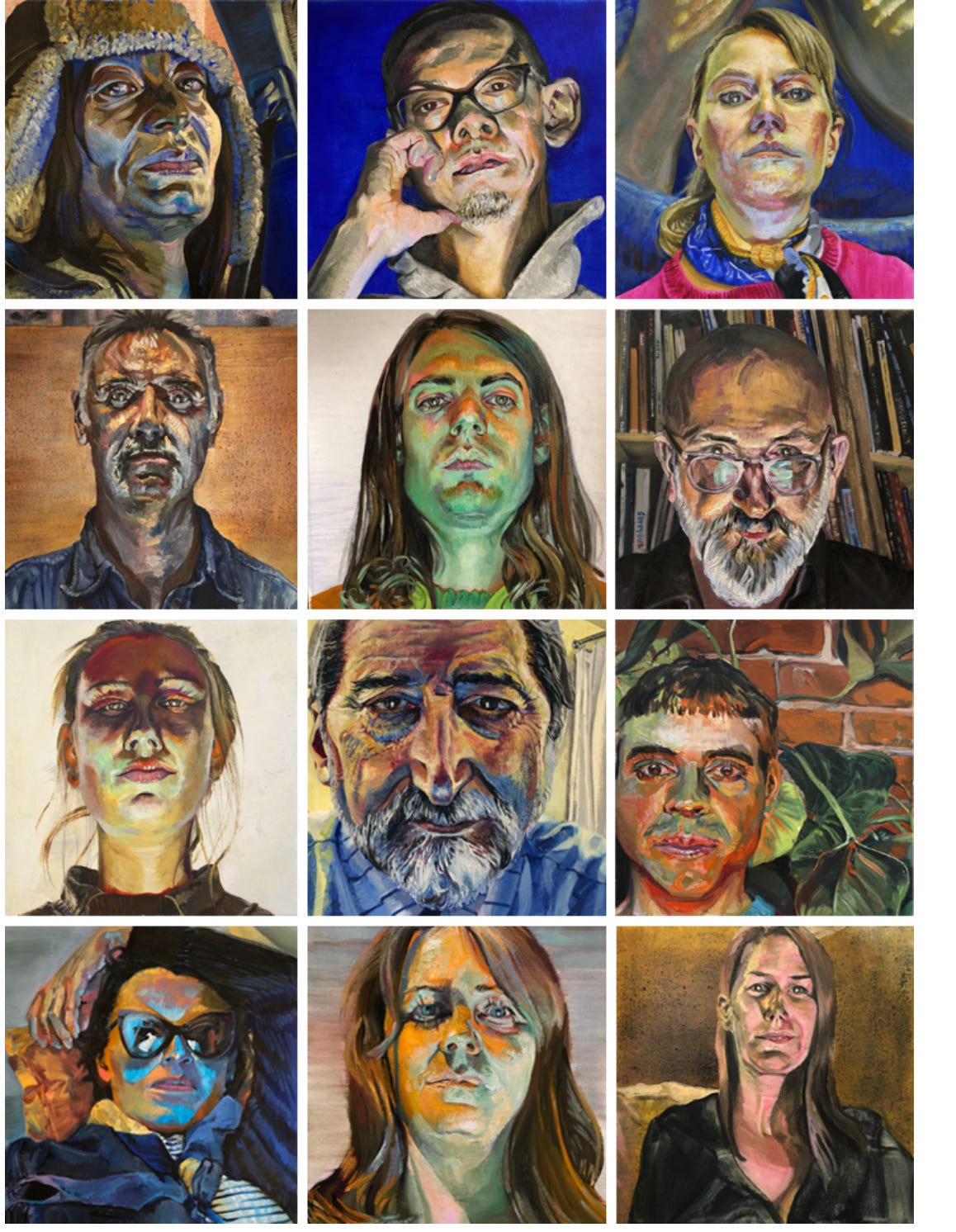 Not that that gaze is any longer limited to youngsters and teenagers and ex-teenagers. Indeed it has steadily entrammeled all of us, as our old pal the painter Gerri Davis (veteran of our issues 5 and 26) explored, ten years after Cooper, in a series of quick facial oil portraits of friends of hers caught in the glare of their own various screens, which she labelled “The Monitors.”